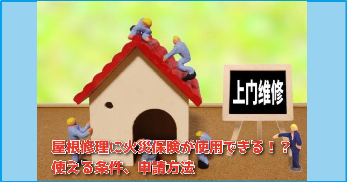 この記事では、屋根修理で火災保険を使うための条件・流れ・気をつけることを解説しています。火災保険を使って屋根修理ができるのは非常に魅力的ですが、火災保険を使うためには条件や気をつけないといけないものがあります。上手に火災保険を利用し、かしこい屋根修理を行えるよう、必要な知識を身に着けよう。